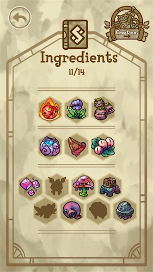 5、回到主界面后,点击魔法书图标,就能查看当前持有的原料;点击对应的原料,还可以了解其相关说明。