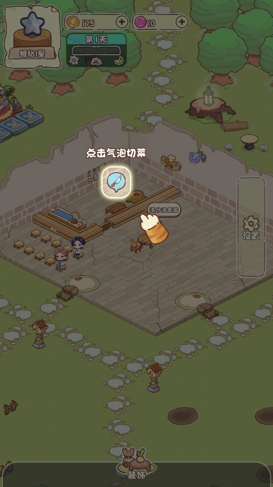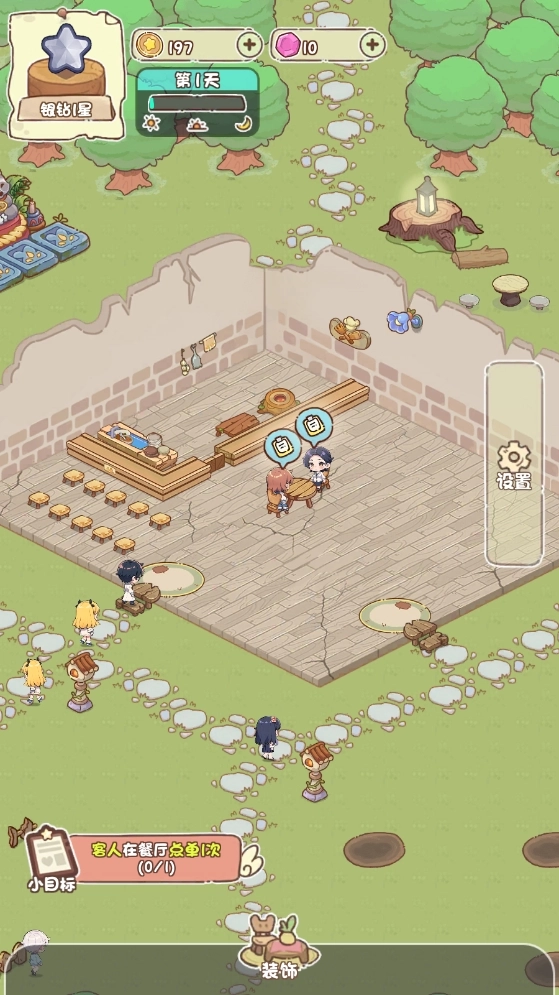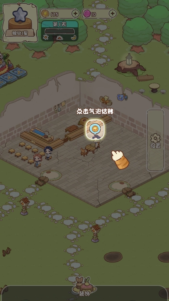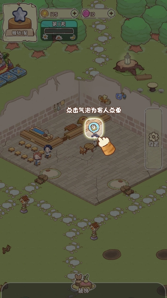 3、餐厅开业后,有客人进来,点击气泡为客人点单。