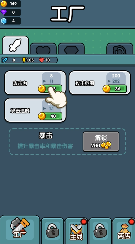 5、玩家能够在工厂里使用金币提升自身角色的属性,从而让自己变得更为强大。