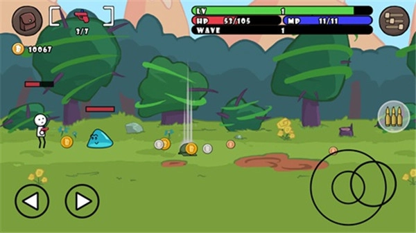2.在这里可以看到自身的血量与魔法值,这些都是需要大家留意的内容;另外,屏幕右侧设有一个子弹按钮,它的作用是用来切换弹夹的。