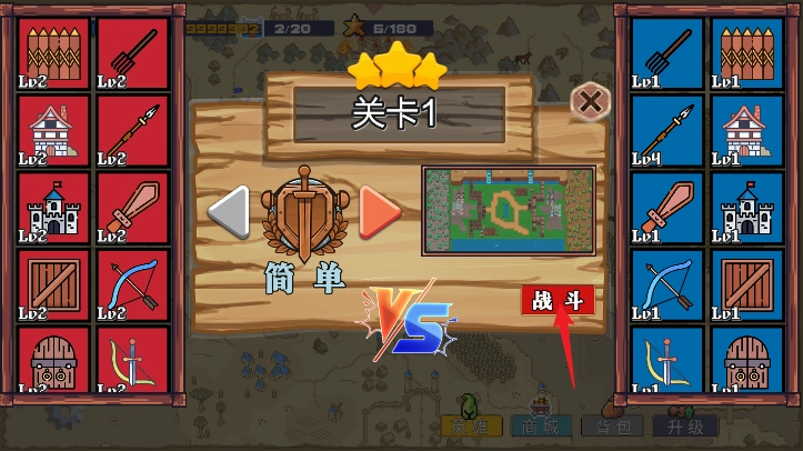 2、选择关卡难度进行战斗;