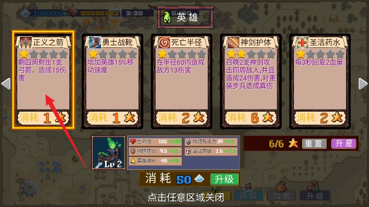 3、可以升级你的英雄技能提升你的战斗力进行战斗;