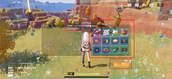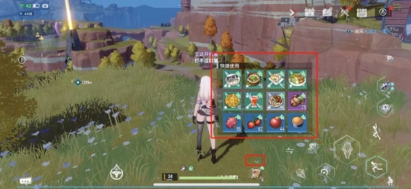 11.切换食物:点击食物上方的小箭头,即可展开食物栏,查看所有已有的食物,点击目标食物就能直接装备。
