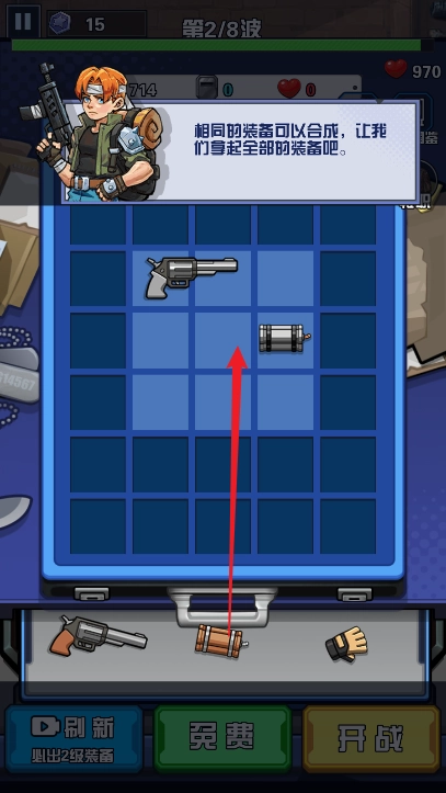 2、这款游戏巧妙融合了合并玩法与塔防元素,创意十足。玩家通过持续合并道具来提升装备等级,以此对抗僵尸,过程中能获得满满的成就感。