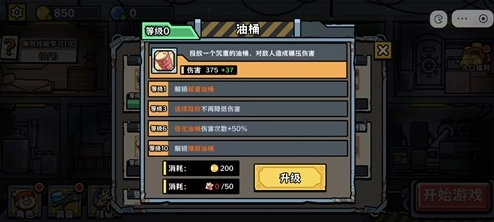 这个技能的回转速度不如聚焦激光,油桶的转动相对较慢,攻击方式也是通过缓慢滚动来实现的。不过,它的攻击范围能覆盖中间的一整排敌人,很好地弥补了聚焦激光射程有限的问题,能够对远处的敌人进行群体范围打击。升级后,不仅可以增加油桶的重量,在撞击敌人时产生击退效果,还能解锁爆炸油桶——油桶在敌人中心时会直接爆炸,这一特性使其在战斗中表现出色,爆炸带来的伤害提升能让技能效果上一个大台阶,是个相当优秀的技能选择。