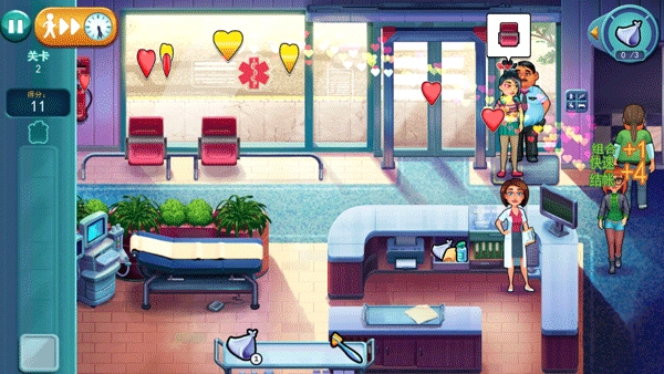 快速分配患者能为您的分数带来额外奖励。快速治疗患者可让您的患者获得额外的心。您可以通过快速完成动作来赢取更多奖励!