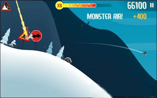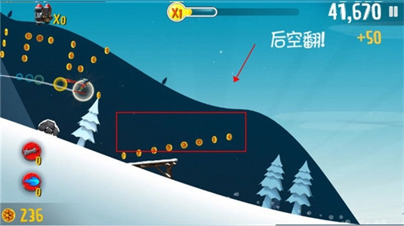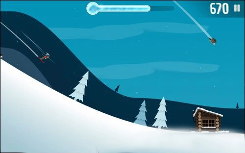 5、长按屏幕能让角色执行后空翻等滑雪技巧。