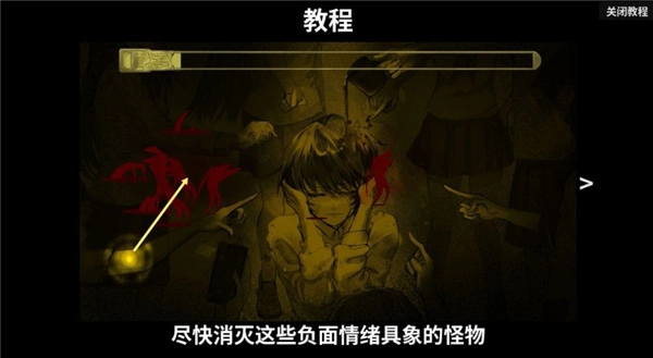 1、滑动屏幕攻击怪物时会触发光团特效,而心疗的过程就像是将光芒注入心灵深处。