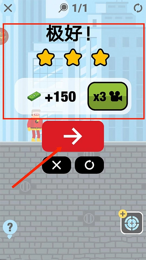5、敌人被成功击飞,顺利通过关卡,获得了评分与奖励,选择“下一关”继续挑战。