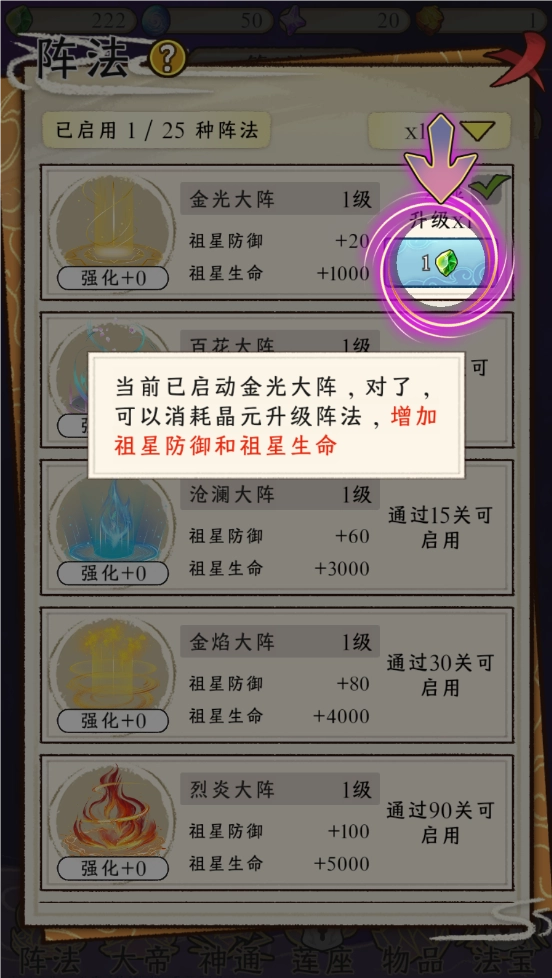 玩家能够通过不断培养与提升各类阵法,为祖星构筑起坚实的防线。不同阵法具备各异的效果和战略价值,对其进行合理配置能显著增强防御成效。