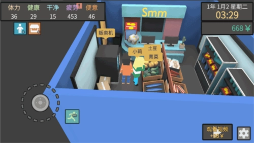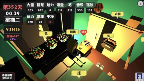 4、方块人的简单生活里,金钱与属性都至关重要,没有钱难以维持生计,而失去健康同样无法继续生活。