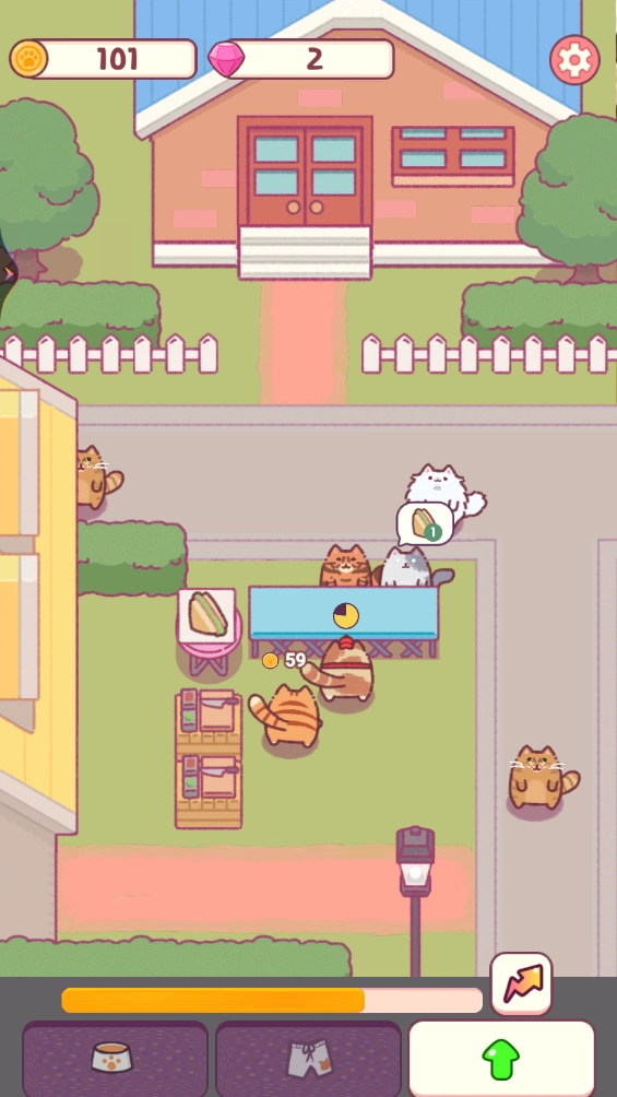 2.你会开启经营一个小摊的旅程,先从制作三明治入手,静静等待猫咪顾客光临,然后为它们烹制美味的食物。