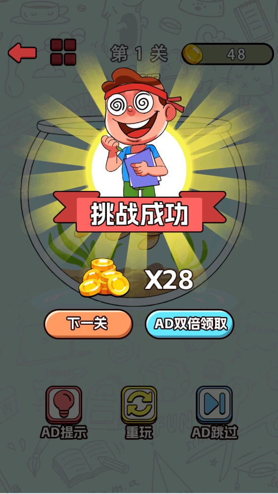 4.你需要用画线的方式闯关,胜利后点击下一关。