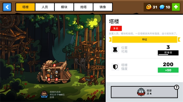 3、塔楼是防御体系的核心所在,玩家能够依据自身需求建造具备不同功能的塔楼,并且可以对这些塔楼进行升级操作。