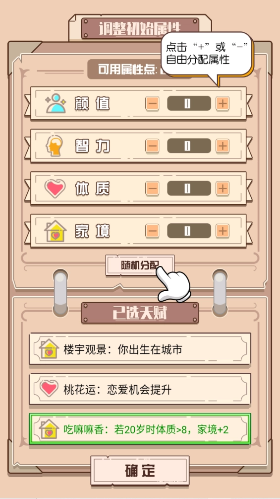 3.接着调整初始属性,自由进行分配。