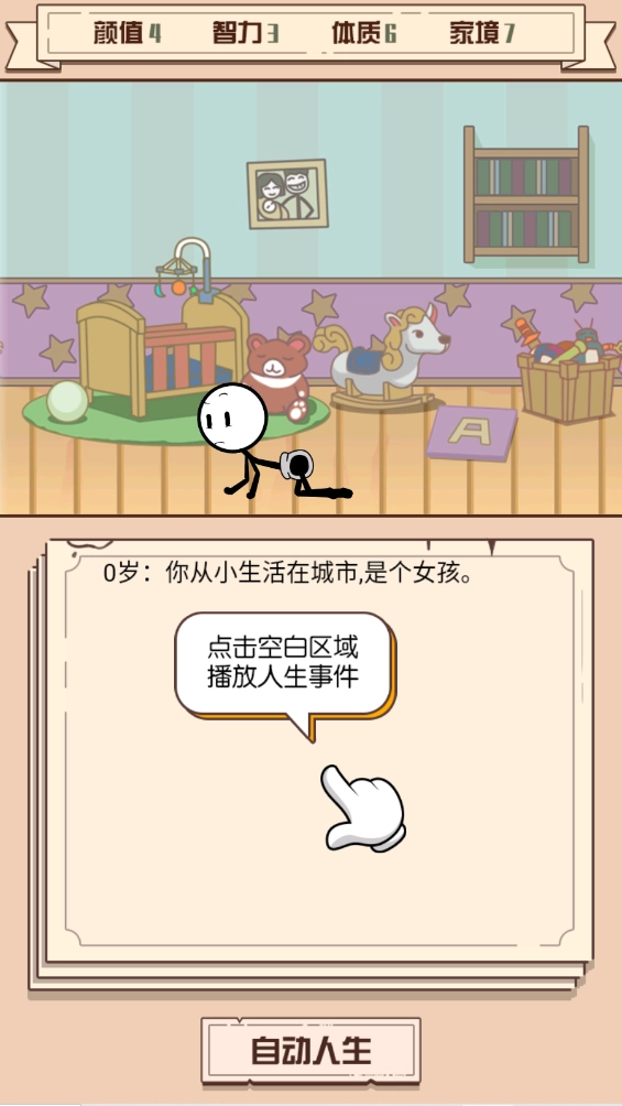 5.用文字来展现你的人生历程,点击空白区域即可播放人生事件。
