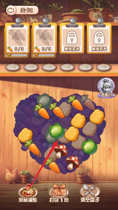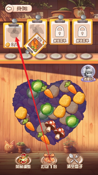 2、要根据食谱来点击对应的食材。