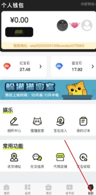 3、在个人中心页面,你能直接看到宝石数量,同时还设有创作中心和订单板块。