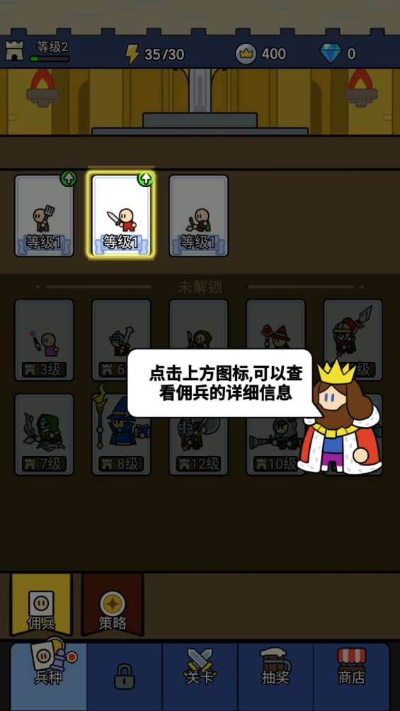 5.提高城堡级别,可以解锁更多的佣兵。