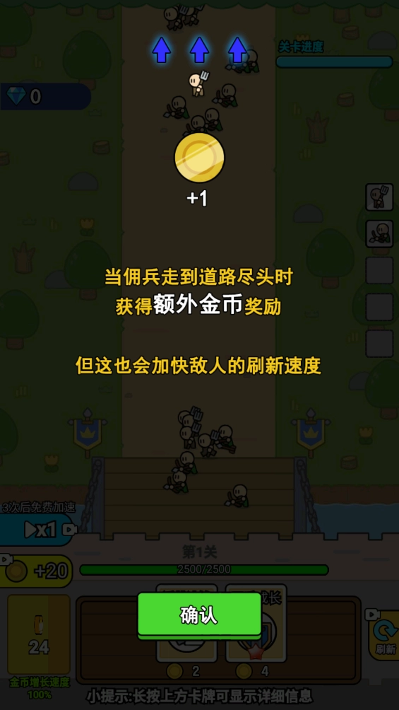 3.当道路行至终点时,会得到额外的金币奖励,不过敌人的刷新速度也会随之加快。