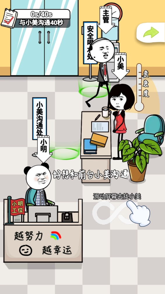 5.点击“开始摸鱼”按钮就能启动,过程中会有相应的任务要求,只要顺利完成任务且没被老板察觉,就能成功通关啦。