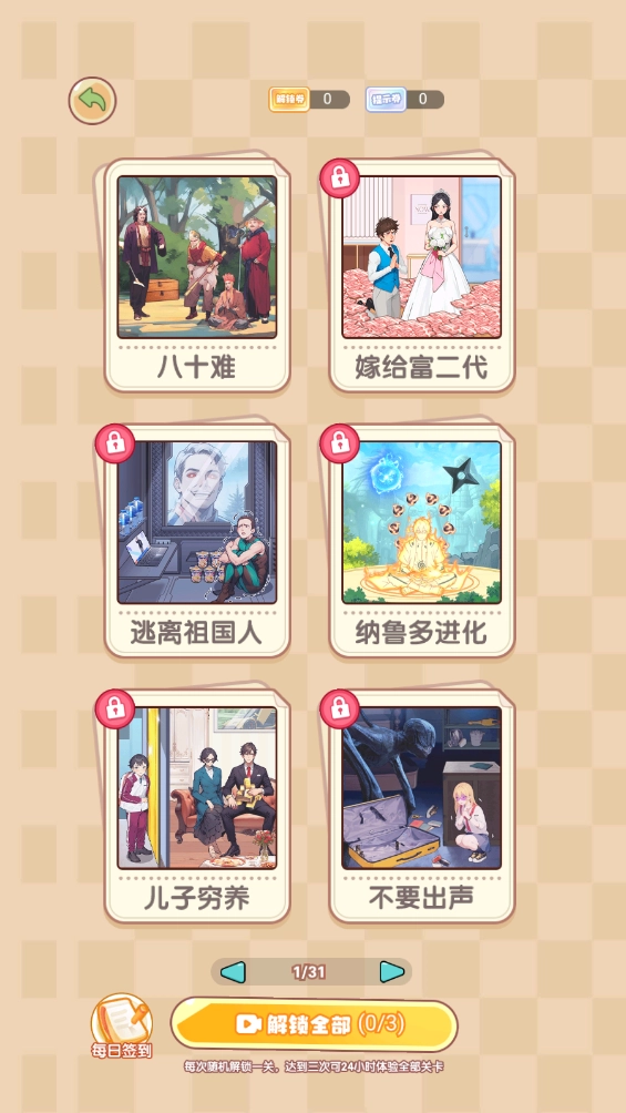3.例如八十一难,需要通关才能解锁后面的关卡。