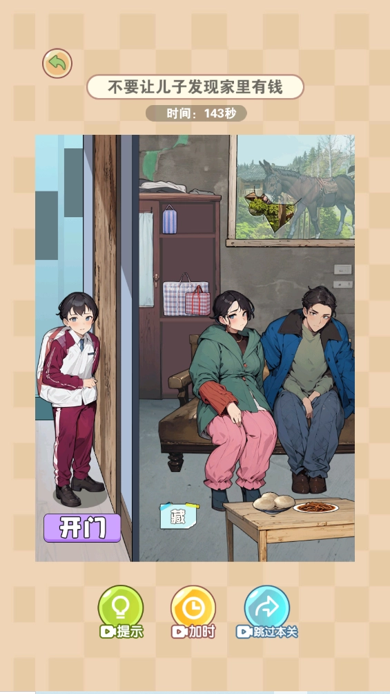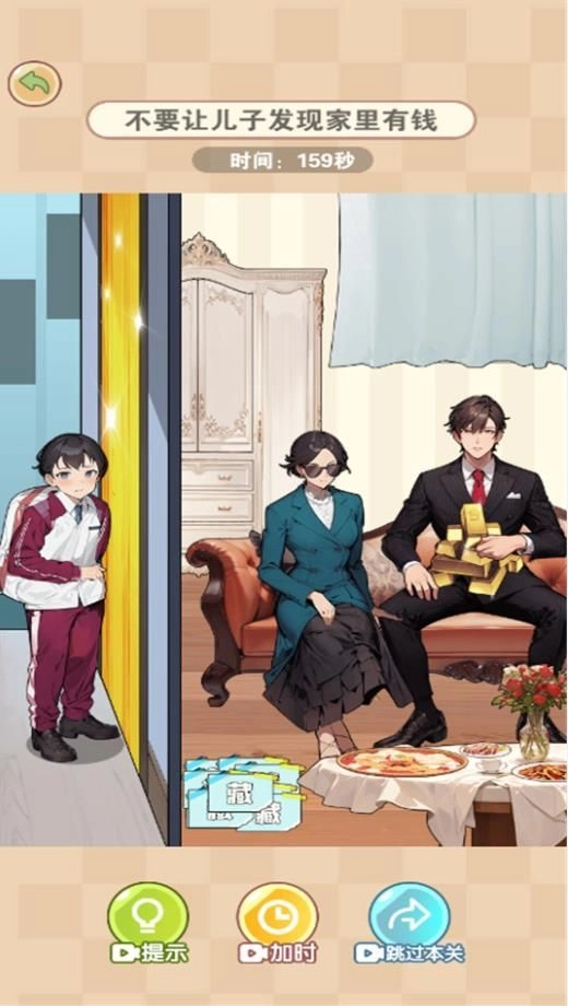 1.要在规定时间内顺利完成关卡,且不能让儿子察觉到家里藏有金钱。