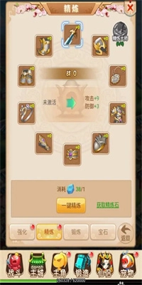 4、要获取银两和精炼石,可把多余的装备拿去熔炼;其中精炼石能用来精炼装备,让装备属性得到进一步加成,而挑战副本是获得精炼石的途径。