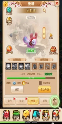 5、对坐骑进行升级,能够解锁更酷炫的外观,获取丰厚的属性加成,还可以穿戴更强大的装备,激活对应等阶的技能,其中最后一个技能更能带来稀有属性效果。