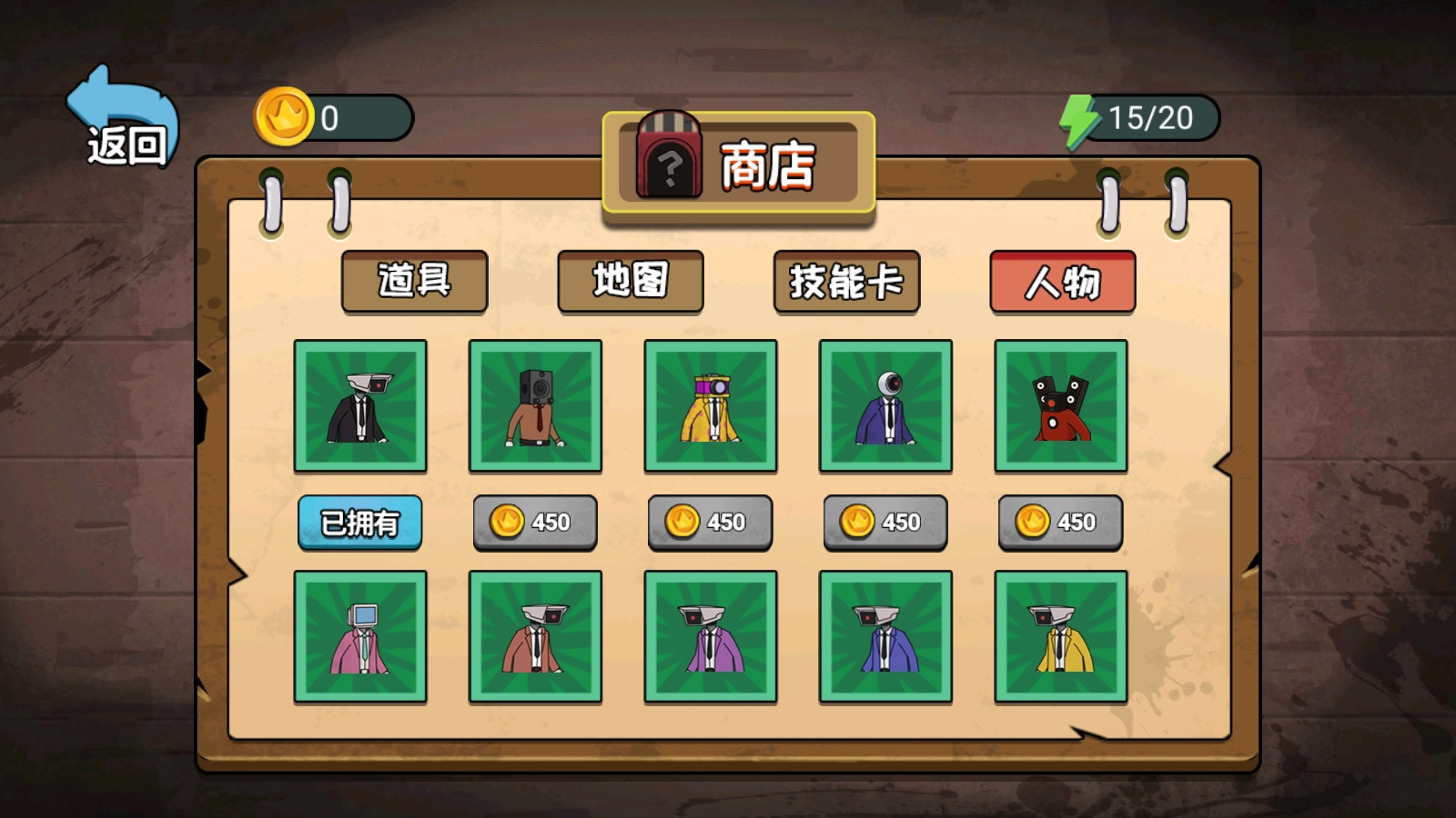 4.神秘商店支持使用金币购买人物、道具、技能卡以及地图。