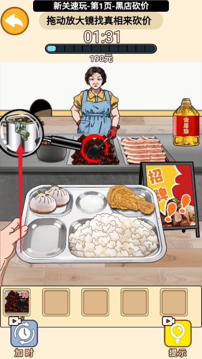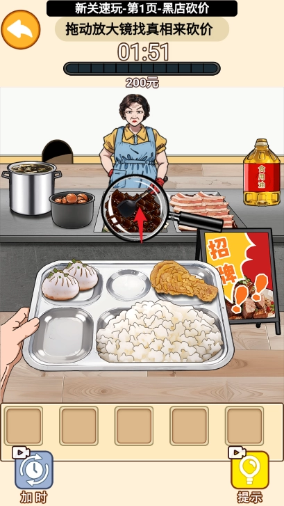 4、拖动放大镜到食用油