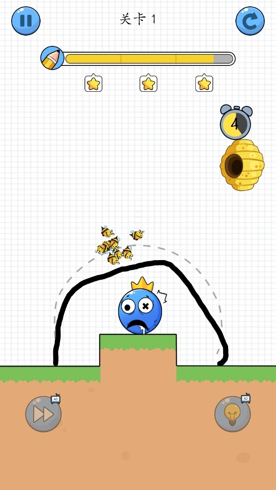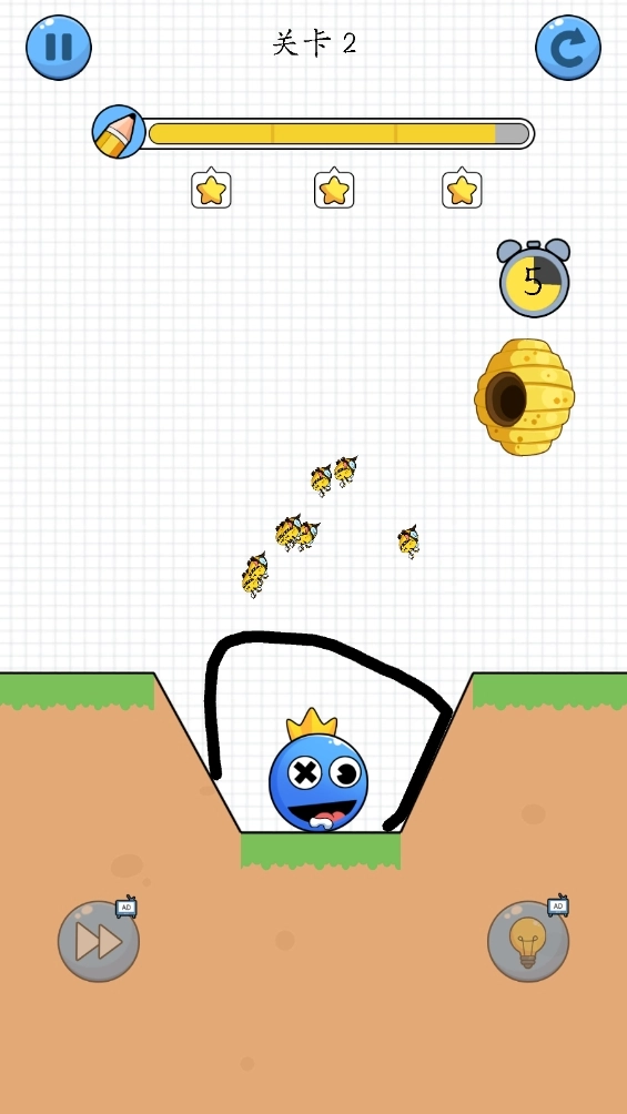 2、操作十分简单,只需滑动屏幕画出线条,就能保护好角色,避免它被蜜蜂伤害。