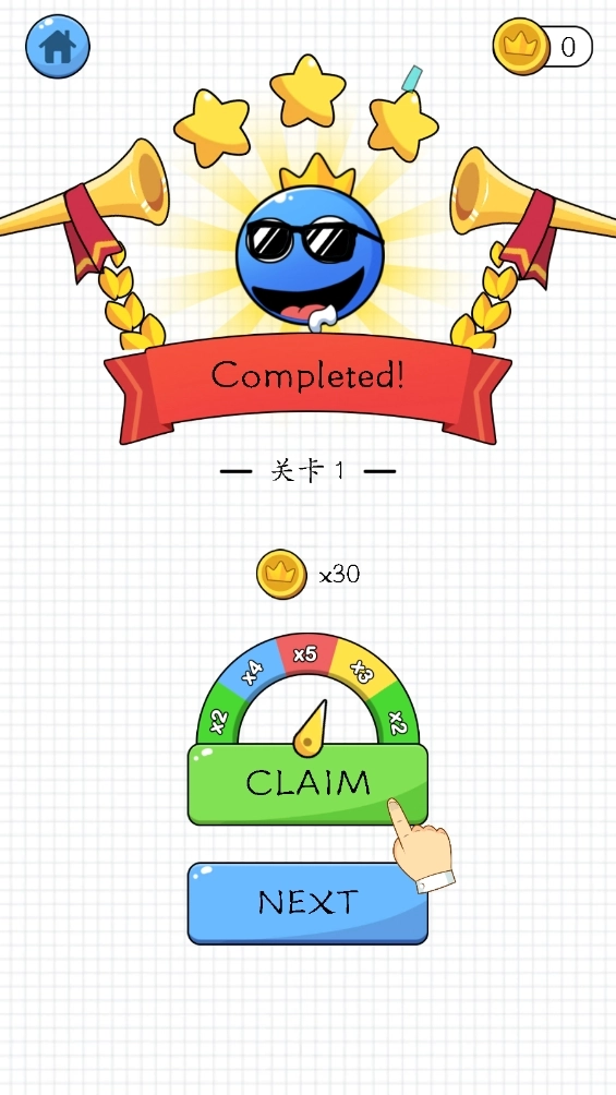 4、之后就能顺利通关,点击“claim”即可参与抽奖领取金币。