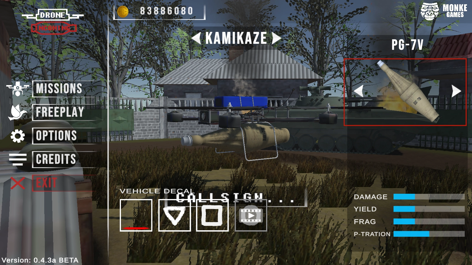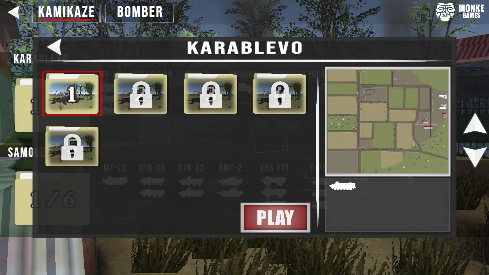 《炸弹无人机来袭》是一款紧张刺激的动作射击游戏。在游戏中,你将操控先进的神风特攻队无人机,执行极具冲击力的空中攻击任务。游戏提供多种弹头供你为无人机配备,助你发挥最强威力,造成最大程度的破坏,成功摧毁敌人的装甲车。现在就选择你的武器,制定精妙的攻击策略,从空中掌控战场,称霸一方吧!