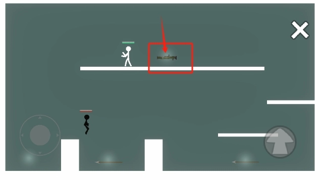 5、我们得借助武器去攻击黑色火柴人,要是被黑色火柴人攻击到,我们就会倒下。