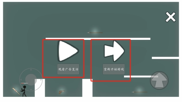 6、死了以后我们可以选看广告复活,或者重开一局。
