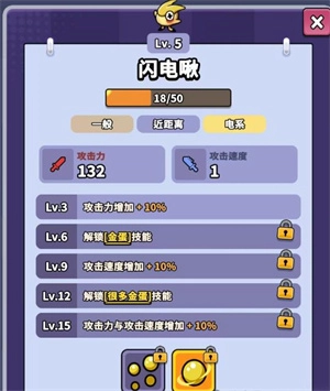 1、在闪电啾尚未达到6级时,可以先随意体验游玩;等它升到6级后,会解锁金蛋技能,此时攻击就能获取10个幻晶球,幻晶球可用于召唤精灵。闪电啾堪称前期阵容的必备精灵,既能提供输出,又能通过打钱助力发育。