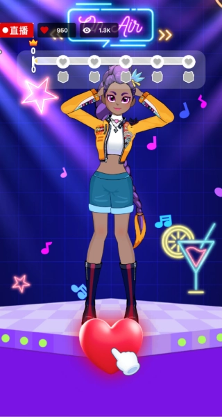 4、连续点击爱心按钮即可为穿搭评分,点击速度越快,获得的时尚分数就越高。