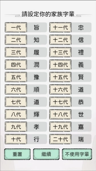 2、设定家族字辈。