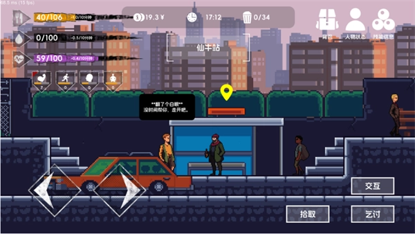 1、游戏开始后往左边走,沿途一边乞讨一边翻垃圾桶。翻垃圾桶找到的食物先别吃,因为很容易导致生病,治病要花不少钱,这样做不划算。