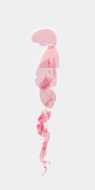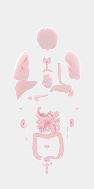 4、我们用手指在屏幕两侧拖动,人体器官就会分开显示,这能更方便我们查找对应的器官;点击屏幕中央,器官又会重新聚拢。