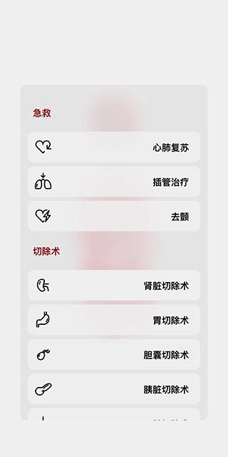 11、点击右下角的手术刀图标,可对模型采取急救术、切除术等相应治疗措施。