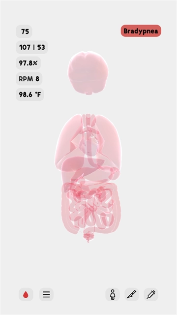12、点击右下角的注射器图标,能够给模型注射不同药物来观察其反应,也可以查看模型进食后的状况。