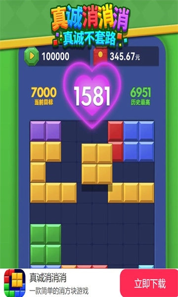 真诚消消消是一款休闲益智类游戏,玩法是连接相同方块使其消除并得分。游戏简单易上手,拥有丰富的关卡和道具,玩家能轻松完成各类关卡,享受游戏乐趣,还有机会获得红包奖励。心动不如行动,快来体验吧!