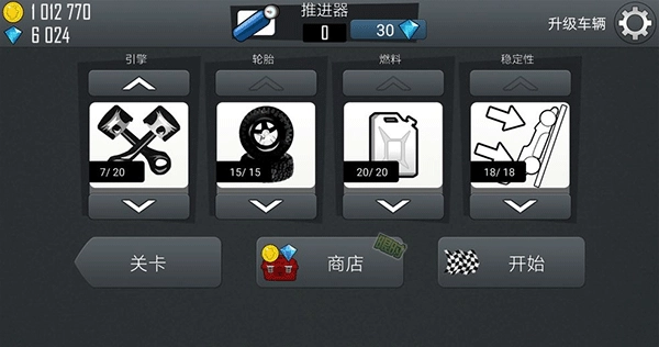 6、在关卡中收集到的金币奖励,能够用于升级赛车引擎,从而提升赛车的性能。