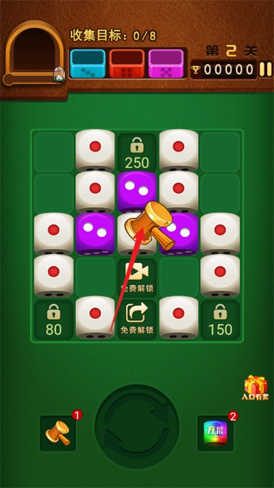 锤子:借助锤子能够敲掉周边的9个骰子,适合在需要清理空间的场景下运用。