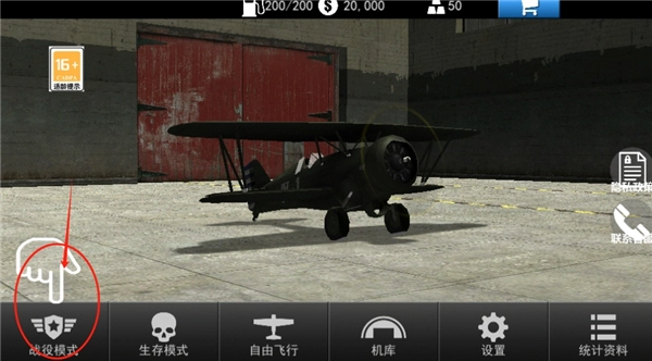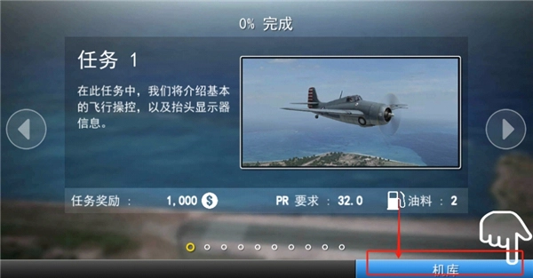 3、在任务中,我们点击“机库”。