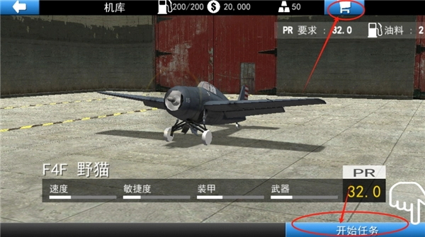 4、在这里能看到已初始化的飞机,你也可以通过右上角的商城购买心仪的飞机,之后点击“开始任务”即可。
