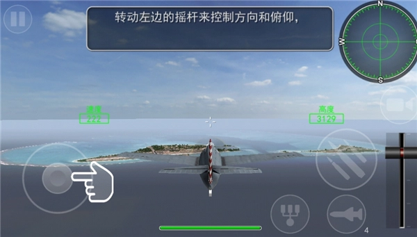 5、正式启动任务后,我们可以通过转动左侧的摇杆来操控方向与俯仰角度。