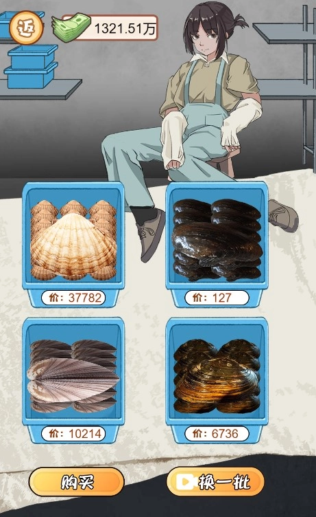 介绍:不起眼的蚌壳中可能藏着璀璨的珍珠,选一个你认为最具潜力的蚌买下来,瞧瞧能开出怎样的惊喜吧?